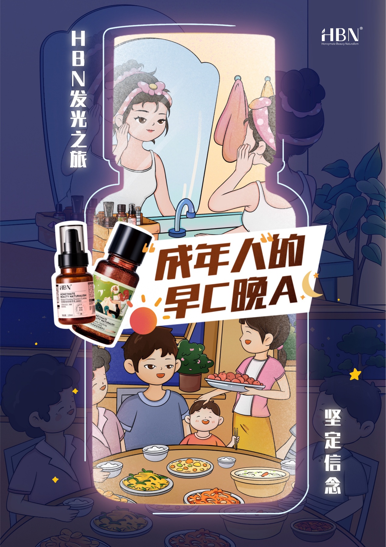 HBN早C晚A——国内早C晚A护肤理念发起者,日间御氧焕亮,夜间塑颜抚纹HBN品牌创立于2019年,以“拥有看得见效果”的创新理念,画面主要突出打造极致功效抗老护肤品,对抗肌肤老化,让功效名副其实