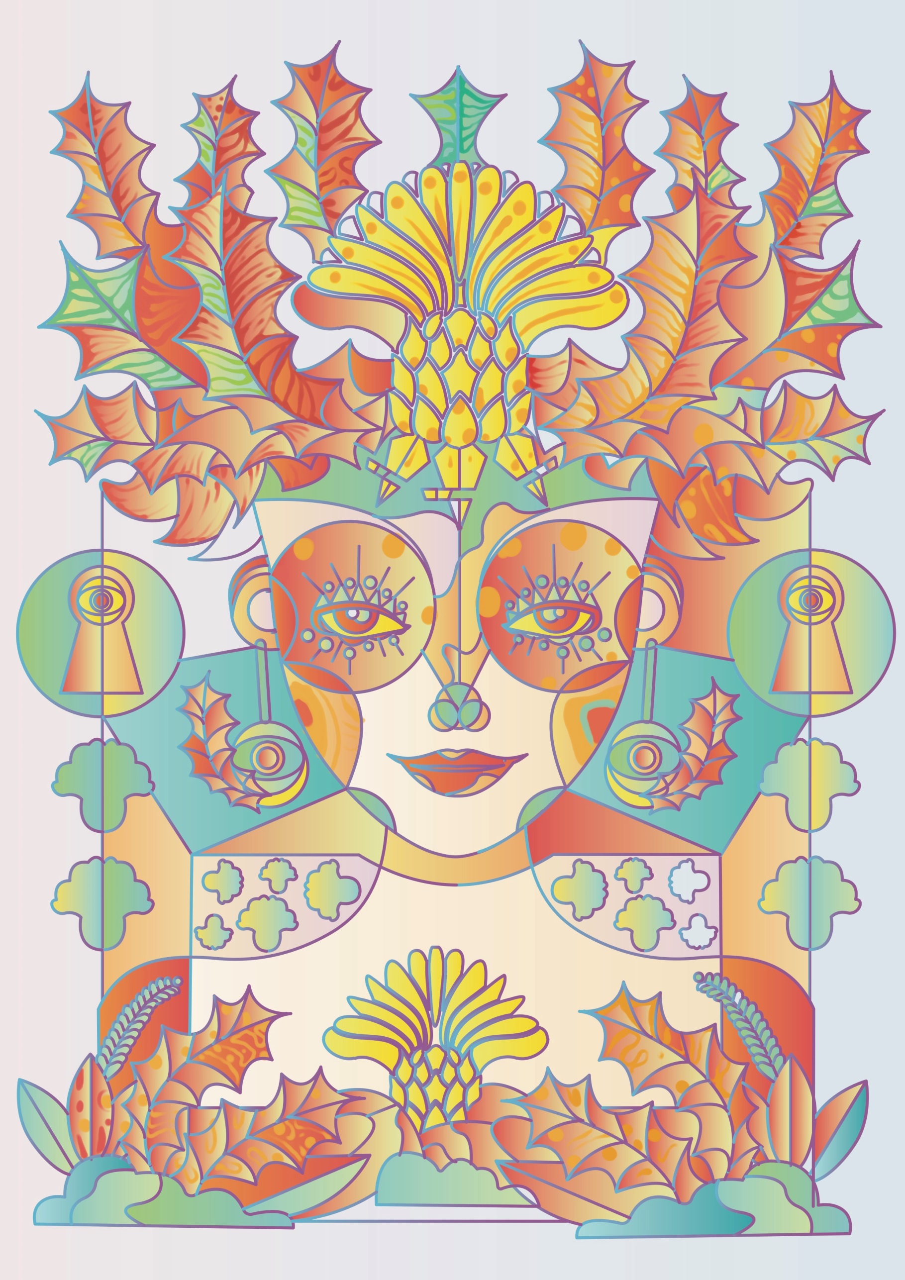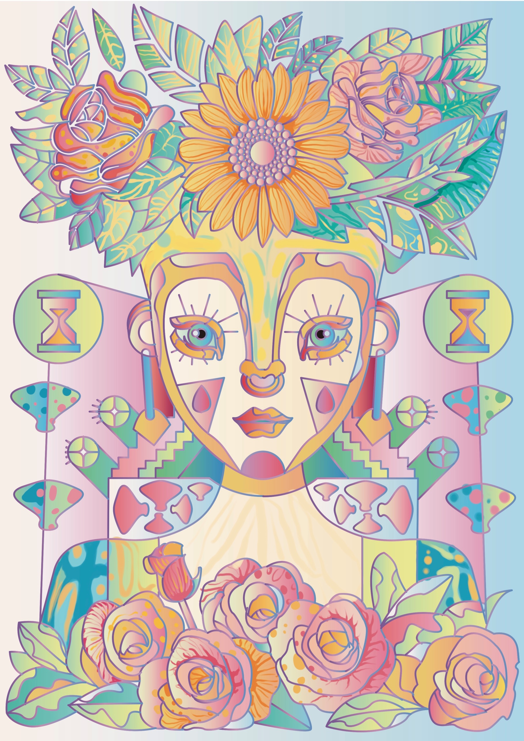 “时间的痕迹”装饰画,利用植物图案和女性形象结合,以平面化的形式搭配丰富的色彩使我们感受 时间给予我们的变化。具有强烈的人文精神。现实中形形色色的人,习惯于把自己交给现代科学,任其压榨自己的想象力,殊不知时间在不断适应中逝去。大数人是看不到自然生命幻化的悲哀与苦涩,而时间更迭,万物生生不息……